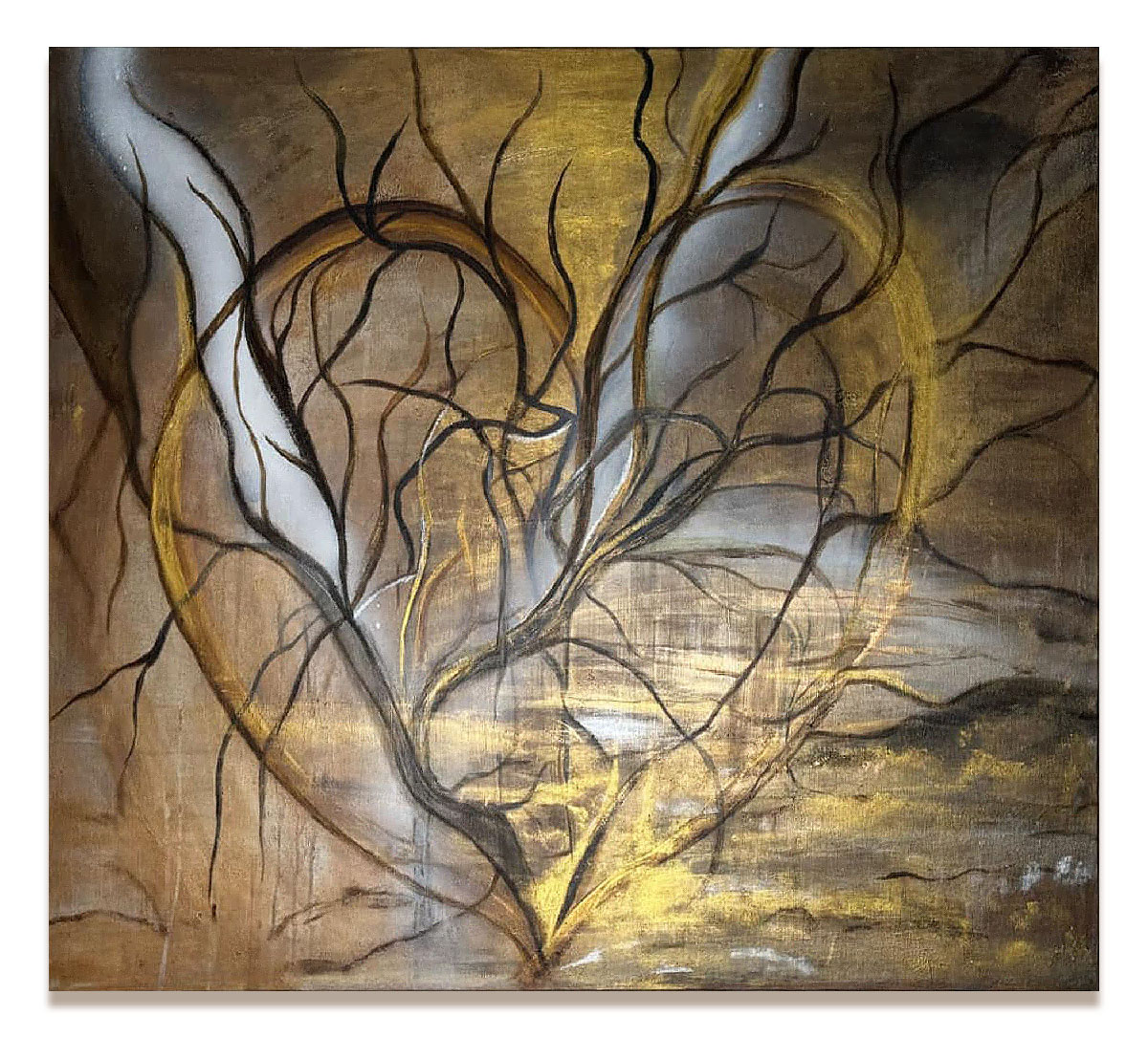 "Heart Grows" er et maleri Hvor naturens grene og hjertets form, flettes sammen i en organisk helhed.