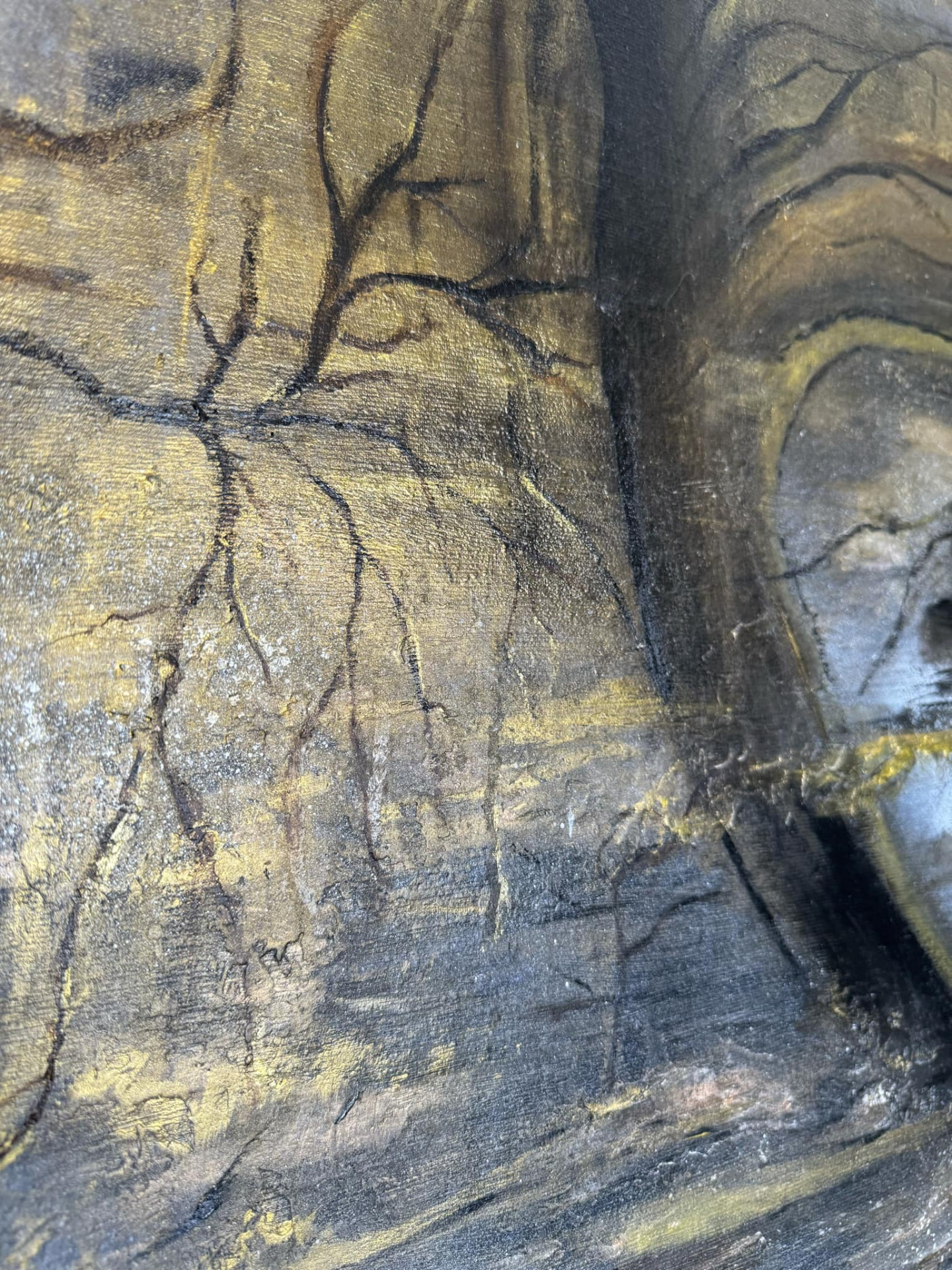 Værket bærer spor af både naturens formationer og kroppens organiske netværk - rødder, årer og landskab.